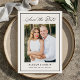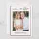 Introduce your wedding with this elegant photo save the date, designed with a soft ivory background for a warm and refined look. The design features “Save the Date” in black calligraphy at the top, with your vertical engagement photo centered to create a personal focal point. Your names, wedding date, and location are displayed below in clean, classic lettering, all framed by a thin black border for a timeless finish. This modern yet understated design is perfect for classic and contemporary weddings. The back is blank, allowing space for additional photos or wedding details.