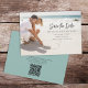 Ce design comprend enregistrer la photo mariage date avec un code QR tendance une calligraphie simple élégante, stylisée design unique mignon, vintage écrit à la main belle simple, moderne minimaliste minimaliste traditionnel, photo couple photo 1 un, texte blanc fiançailles chic tendance, turquoise script de typographie, photo enregistrer les dates, engagé photo fond saigné, calligraphie moderne écriture manuscrite