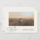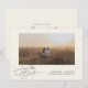 Une calligraphie fantaisiste très moderne contre un script arrière - plan couleur ivoire orne cette carte Save The Date. Customisez facilement avec vos informations personnelles, photo, et l'URL du site du mariage