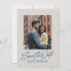 Save The Date Modern stylish blue script two photo