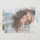 Fresh, moderne imitation vellum overlay style photo enregistrer la carte mariage date. Le recto de la carte comporte "Save the Date" dans une typographie de script ultra moderne, en noir, avec le mot "the" dans un coeur reliant les mots "save" et "date". Ce texte est placé au-dessus d'une fausse couche de vellum, avec votre image de fond. La date mariage, l'emplacement et les noms de mariée et de mariée apparaissent ci-dessous, dans une police sans serif moderne fraîche et légère qui crée un look très propre, et vos noms sont écrits dans une belle typographie de script à la main bondissante. Le dos de la carte comporte une autre photo fiançailles à fond de sang. NOTE DU CRÉATEUR : La "superposition vellum" sur ce produit est un effet numérique." Copyright Anastasia Surridge pour Anastasia Designs, tous droits réservés.