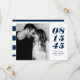 Marine moderne Bleu et Blanc Gras Date Typographie Photo Enregistrer la date | Un personnalisable enregistrer la carte à plat date avec la typographie audacieuse et le motif rayures. Cette photo design enregistrer la carte date est parfaite pour tout thème mariage et toute saison. Vous pouvez customiser la carte en changeant le motif en une autre photo ou une autre image.