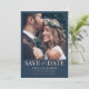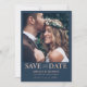 Mettez vos plans de mariage en mouvement avec cette carte de date moderne enregistrer, conçu pour faire une première impression frappante. Le recto présente votre photo préférée à côté de la typographie "Save the Date" en or faux métallique rose sur un arrière - plan bleu foncé sophistiqué, créant un contraste élégant. Au contraire, vous trouverez de l’espace pour un monogramme sur mesure, magnifiquement encadré par un délicat feuillage en or faux rose pour une touche d’élégance supplémentaire. Parfait pour les couples qui veulent marier style contemporain et charme intemporel, cette carte annonce votre grand jour d'une manière raffinée et mémorable.