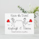 Cette annonce super mignonne moderne Save the Date est sûr d'obtenir des sourires de tous vos invités! Doté d'un couple de style dessin vectoriel courant vers l'autre avec des ballons rouges en forme de coeur dans les mains. Super facile à customiser avec vos informations !