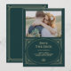 Ces cartes de save the date de mariage glamour présentent une touche moderne sur l'art déco classique. Un cadre géométrique doré champagne faux orné et des ornements décorent un fond vert émeraude élégant avec votre photo personnelle préférée pour un look de mariage dramatique et vintage.