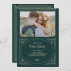 Ces cartes de mariage 'save the date' glamour présentent une touche moderne sur l'art déco classique. Un cadre géométrique doré champagne faux orné et des ornements décorent un fond vert émeraude élégant avec votre photo personnelle préférée pour un look de mariage dramatique et vintage.