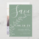 Vert Sage Minimal Moderne Économisez L'Invitation Date. Élégant minimaliste enregistrer le Carte photo de date avec simple script de police feuillage et photo.