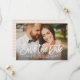Annoncez votre mariage avec style grâce à ces cartes de save the date modernes qui présentent votre photo de fiançailles avec un design de superposition de script brossé rustique sur le devant, ainsi qu'un motif coordonné de bandes horizontales dessinées à la main au dos avec une couleur de fond rose blush (peut être modifiée). Comprend une formulation simple qui peut être personnalisée avec les détails importants. Remarque, le filtre de dégradé de photo sombre peut être supprimé.
