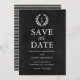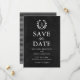 Save The Date Monogram Laurel Wreath Faux Chalkboard