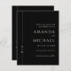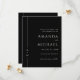 Simple, élégant et de bon goût, ce mariage noir classique Save the Date card comporte une fine bordure le long du bord gauche avec le monogramme initial de la mariée et du marié. Une combinaison de police serif élégante intemporelle associée à une police script traditionnelle ajoute une élégance simple au design. Vous pouvez ajouter, supprimer ou ajuster le placement du texte en fonction de vos besoins. L'arrière - plan noir toujours populaire avec du texte blanc cassé ajoute à la simplicité propre de ce design. Ces Save the Dates sont disponibles en formats de téléchargement numérique papier et papier.