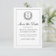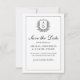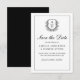 Save The Date Monogramme de crête feuillue Mariage noir blanc