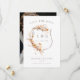 Un beau mariage classique sauvez le faire-part de date avec une torsion de chute avec une crête de bouclier dessinée à la main ornée de fleurs de pêche en terre cuite aquarelle et feuilles, avec votre monogramme et date mariage en gris au centre. Personnalisez encore plus avec vos noms, l'emplacement du mariage et la photo au verso.