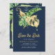Save The Date Monstera Tropical Palm Photo Mariage bleu marine