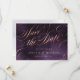 Écriture manuscrite romantique script de calligraphie en couleur or faux rose sur moody profonde violet aquarelle arrière - plan, élégant et sophistiqué, grand mariage enregistrer les cartes de date pour mariage vintage, les mariages d'automne ou d'hiver et mariage de soirée. Voir toutes les pièces correspondantes dans la collection.