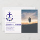 Nautical anchor and monogram framed by a lightened version of patriotic florals: white rose, blush pink peony and light blue. Preppy pink and white stripes for a summer, beach, or destination wedding event. Photo template via Pixabay licensed under CC0 and must be replaced with your own photo.