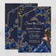 Save The Date Navy Blue Golden Tiara Roses Quinceañera