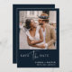 Photo de mariage de scénario moderne Navy Blue enregistrer la date. Pour une personnalisation plus avancée de cette conception, cliquez sur le BOUTON OUTIL DESIGN BLEU ci-dessus !