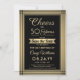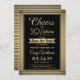 Famille d'Invitations et amis à une fête d'anniversaire élégante avec personnalisation noir et faux feuille d'or enregistrer les invitations de fête de date. Tout le libellé de ce modèle (y compris "Cheers to 50 Years") est mis en place pour un 50ème anniversaire, mais est simple à personnaliser pour n'importe quelle année ou type d'événement. Le design se compose d'une bordure en fausse feuille rayée moderne, d'une calligraphie de script élégante et d'une typographie d'art déco vintage classique. Veuillez noter que l'or est imprimé en couleur foncée, pas en feuille métallique. Le design neutre pour les femmes convient aussi bien à un homme qu'à une femme. Bonjour et Joyeux anniversaire !