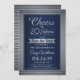 collègues Invitations, collègues, famille et amis à une élégante fête de la retraite avec personnalisation marine bleu et faux argent feuille enregistrer les invitations de la fête de la date. Le libellé modèle "Cheers to 20 Years" est établi pour honorer vingt ans de service, mais est simple à customiser pour n'importe quel nombre. Le design se compose d'une bordure rayée moderne, d'une calligraphie de script élégante et d'une typographie d'art déco vintage classique. Veuillez noter que l'argent est imprimé gris foncé couleur, pas de papier métallique. Le design neutre pour les femmes convient aussi bien à un homme qu'à une femme. Bravo, félicitations et bonne retraite !