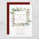 Cette carte plate de sauvegarde de mariage comporte de l'eucalyptus aquarelle peint, des feuilles vertes, des baies rouges, des branches de pin et un cadre carré en or faux avec un fond rouge au dos. Pour une personnalisation plus avancée de ce design, veuillez cliquer sur le lien "Personnaliser davantage". Des articles assortis sont également disponibles.