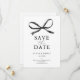 Ces cartes de save the date de mariage présentent un fond blanc simple, un nœud aquarelle noir classique et un modèle de texte élégant facile à personnaliser.