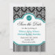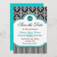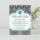Save The Date Noir blanc damassé bleu turquoise mariage enregist