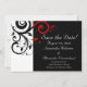 Ensemble moderne et contemporain audacieux et frappant de mariage noir et de papeterie avec noir et blanc avec des accents rouges, avec un fond délicat en forme de feuille en spirale. Personnalisez en ligne avec vos détails de mariage. Cet article est disponible en tant que collection de mariage complète comprenant des invitations, des cartes de réponse, des aimants, des autocollants, des cartes de table, des classeurs de planification de mariage et des albums photo et plus encore !