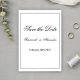 Laissez votre histoire d'amour se dérouler avec notre "Mariage moderne Monogrammé Noir & Blanc" Sauvegardez la carte Date avec l'important enregistrer les informations de date sur le devant, et les monogrammes de la mariée et du marié sur le dos. Ce chef-d'oeuvre minimaliste est décoré d'un arrière - plan blanc immaculé encadré par une bordure noire sophistiquée. À l'intérieur, vos noms, élégamment scénarisés dans une police de script chic avec l'en-tête Enregistrer la date, occupent le devant de la scène à côté de votre date mariage, qui est présentée dans une police moderne claire et facile à lire. Ce design intemporel est parfait pour les couples qui recherchent une touche contemporaine avec un clin d'oeil à l'élégance classique. Laissez la simplicité parler des volumes de votre célébration à venir et les êtres chers invitations à partager votre bonheur toujours après.