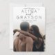 Un mariage simple et moderne sauve la conception de la date avec une photo verticale fond de saignement, avec vos noms en haut en lettres modernes, rejoint par un script florissant "et". Personnalisez avec votre date et votre emplacement mariage, et ajoutez des détails supplémentaires à l'arrière, comme votre site Web mariage. En raison de l'emplacement du texte et des éléments de conception, ce style est recommandé pour les photos verticales avec un grand espace blanc ou léger en haut,
