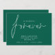 Nous avons décidé de Forever Emerald Green Save The Date. Disponible numériquement et imprimé. Design de typographie élégant pour invitation vos invités pour sauver votre date. Nous avons décidé sur Forever qui est dans un stylé script est au centre. Le reste du texte que vous pouvez facilement personnaliser. Les couleurs du texte et de l'arrière - plan peuvent être modifiées si vous souhaitez mieux convenir à votre thème mariage via l'option customiser plus loin.