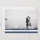 Nous avons noué le noeud? notre carte de remerciements marine minimaliste et élégante sur le thème nautique blanc est parfait pour un mariage marin sur le thème de l'océan. Le design avant comprend une mise en page complète des photos. Une marine moderne et une bande blanche avec "Merci" conçu dans une élégante typographie de script fluide. Le nom de la mariée et du marié est placé sur la conception de la bande. Les couleurs vives blanches et marines créent un design nautique moderne. L'envers présente notre illustration d'ancre et de corde dessinée à la main avec les initiales de mariée et de mariée. Toutes les illustrations sont des oeuvres originales dessinées à la main par Moodthology.