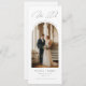 Votre amour mérite d'être partagé d'une manière qui soit significative, belle et fidèle à votre histoire. Cette carte de save-the-date est conçue avec ce sentiment à l'esprit. La photo élégante et cintrée vous ramène à un moment précieux, capturant la connexion silencieuse et la chaleur entre vous. Entouré de lumière douce et d'architecture intemporelle, le design possède un charme discret et raffiné qui met en valeur votre amour. Avec des options pour personnaliser la photo, les couleurs ou le texte, cette carte peut refléter votre parcours unique et célébrer ce qui rend votre histoire d'amour unique.