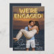 Cette carte de Save the Date pour l'annonce de mariage présente un design amusant et romantique. Une photo de fiançailles exemple couvre le fond, que vous pouvez remplacer par votre propre photo personnalisée ou une autre image de votre choix. La phrase "nous sommes fiancés" est imprimée en ballons en feuille d'or sur la partie supérieure. Le lieu et le jour de la carte "Save our Date" sont imprimés en bas dans une élégante police blanche, avec du texte supplémentaire imprimé au dos de l'annonce.