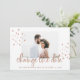 Ce mariage élégant change la carte date avec une typographie de script d'or rose moderne et des accents avec votre photo personnelle préférée, sur un simple arrière - plan blanc. Il y a de la place sur le dos pour un message personnel et des informations supplémentaires sur le rééchelonnement ou le report du mariage.
