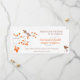 Cet élégant et romantique, à l'exception de l'invitation à la date, présente deux oiseaux bruns, l'un assis dans une branche d'arbre avec des feuilles oranges et l'autre oiseau en vol approchant. Le libellé "Veuillez enregistrer la date pour le mariage de" est en brun avec la date et l'emplacement du mariage. Les noms de la mariée et du marié sont en orange pour correspondre aux feuilles sur la branche de l'arbre. Une petite note indique qu'une faire-part de mariage officielle sera à venir.