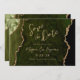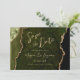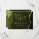 Ce mariage élégant sauvegarder la carte date dispose d'une image arrière - plan d'agate d'aquarelle verte d'olive taillée avec parties scintillant en faux or. Le texte personnalisable combine écriture manuscrite moderne couleur or, cuivre et polices italiques. L'envers présente un design coordonné d'agate vert olive et or.