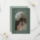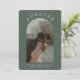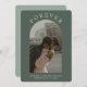 Cartes de faire-part fiançailles élégantes et modernes avec votre photo de fiançailles préférée en forme d'arc. La typographie moderne et les tons verts rendent cette carte fiançailles spéciale. Customisez le texte correspondant à vos besoins. Cette carte peut également être utilisée comme carte de sauvegarde de la date.