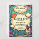 This elegant fairytale-style save the date invitation is perfect for a modern wedding. The retro design features a vintage enchanted forest, a castle illustration, and black calligraphy on a storybook-themed background.
