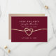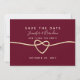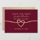 Simple, élégant, minimaliste, romantique mariage bordeaux enregistrer l'invitation de la date avec script de calligraphie branché et coeur de corde or.