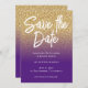 Superposition de fausse brillance jaune doré sur fond violet royal pour les informations de votre faire-part de mariage.