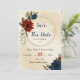 Unique enregistrer la carte de date avec romantique brûlé orange et bleu marine fleurs et feuilles verts. POUR PLUS DE PRODUITS CORRESPONDANTS cliquez sur la collection ci-dessus ou contactez-moi.