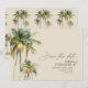 The warm neutral background and delicate palm illustration create a calm, elevated aesthetic that works beautifully for destination weddings, resort ceremonies, and coastal celebrations. Fully customisable with your names, date, and location, this save the date card is ideal for couples planning a refined yet relaxed wedding experience.