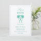 Palmiers Tropicaux Notés Bright Ocean Aqua Turquoise Blue Beach Wedding / Destination Wedding Suite Design - Enregistrer La Date Photo Carte Faire-part. Ce design à thème tropical présente une illustration simple mais unique de deux silhouettes de palmiers reliées entre elles dans un noeud. Ce design moderne est parfait pour un mariage sur la plage, un mariage tropical à thème destination mariage, mariage île ou fête de mariage d'été. C'est pour le couple contemporain qui recherche quelque chose de moderne, classique mais fantaisiste et unique. Vous pouvez également utiliser ce design pour une douche nuptiale, une fête de fiançailles, une douche fiançailles, une douche à couple, un wedding shower, un dîner de répétition ou un faire-part mariage. Tout le texte, les éléments graphiques, le design et la couleur arrière - plan peuvent être changés en n'importe quelle couleur de votre choix. Illustration de fat*fa*tin. Facile à personnaliser avec votre propre message texte, nom, photo ou image. D'autres styles de police, filtres photo et fonctions d'édition sont disponibles sur la page "modifier la conception". ・ ・ ・ ・ ・ ・ ・ ・ ・ www.zazzle.com/fatfatin_blue_knot