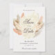 Cette douce et terre-tonique saute-la-date est un mélange équilibré de charme rustique et d'élégance délicate, avec de jolies fleurs séchées à l'aquarelle et l'herbe pampa dans les tons beige chaud et rose poussiéreux. Le libellé "enregistrer la date" est écrit dans une élégante police de caractères marron terreux. Sous les noms, la date et l'emplacement du mariage dans une police serif tout-casquette classique. Ajoutez l'une de vos photos fiançailles préférées au dos de la carte encadrée par une arche romantique à fleurs