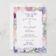 Invitation vos invités à un mariage simple, informel, boho chic avec ce papier déchiqueté et aquarelle floral avec des vibes romantiques. Les fleurs sont rose pastel et violet lilas avec verdure.