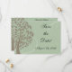 Contenu entièrement recyclé après consommation pour les invitations photo de faire-part "Save the Date". (également disponible sur d'autres types de papier). Conception douce, naturelle et panoramique de la nature en plein air dans des tons de vert sauge terreux et de brun terre doux. Forme d'arbre moderne stylisée avec des volutes blanches fluides en arrière-plan. Certains produits sont disponibles sur des papiers recyclés et respectueux de l'environnement.