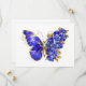 Bijoux, bleu, saphir, papillon aux fleurs pétillantes avec aile décorée de bleu, fleurs précieuses avec feuilles d'or sur arrière - plan blanc.