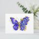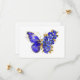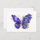Bijoux, bleu, saphir, papillon aux fleurs pétillantes avec aile décorée de bleu, fleurs précieuses avec feuilles d'or sur arrière - plan blanc.