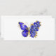 Bijoux, bleu, saphir, papillon aux fleurs pétillantes avec aile décorée de bleu, fleurs précieuses avec feuilles d'or sur arrière - plan blanc.