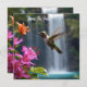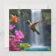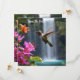Un Colibri Qui Se Trouve En Face D'Une Cascade Est En Train De Sucer Des Fleurs À Proximité.